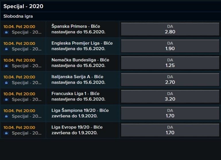 A dok željno iščekujemo Premijer ligu, Seriju A, Primeru, Bundes, francusku Ligu 1, pa onda i nastavak evrokupova, kladionica MOZZART potrudila se da vam ovu nenadanu pauzu prekrati zanimljivom ponudom za klađenje.