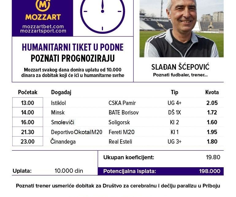 U plemenito tipovanje Šćepović senior kreće od Tadžikistana ISTIKLOL – CSKA PAMIR. Domaći su startovali trijumfom i to kakvim, od 7:0. Rivali su doživeli poraz od 3:1. Pored početne prvenstvene pobede domaći imaju pobede u kupu i Superkupu. Minulu sezonu gosti su završili sa četiri pozitivna ishoda. I poslednji međusobni okršaj CSKA je dobio sa 3:2.