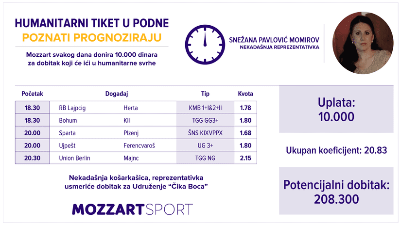 Humanitarni tiket u podne: Snežana Pavlović Momirov tipuje za Udruženje “Čika Boca”