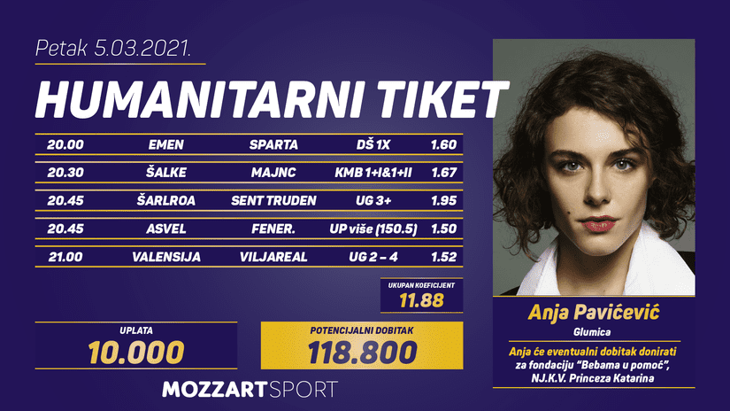 Humanitarni tiket u podne: Anja Pavićević tipuje za akciju “Bebama u pomoć” i za Fondaciju “Nj.K.V. Princeze Katarine”